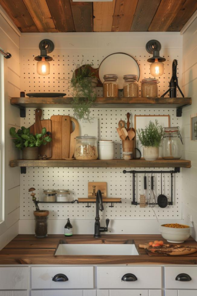 Create a functional and visually appealing storage solution by installing a DIY pegboard wall in your kitchen. Use hooks and pegs to hang cooking utensils, pots, pans, and other essentials for easy access.