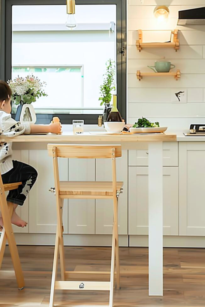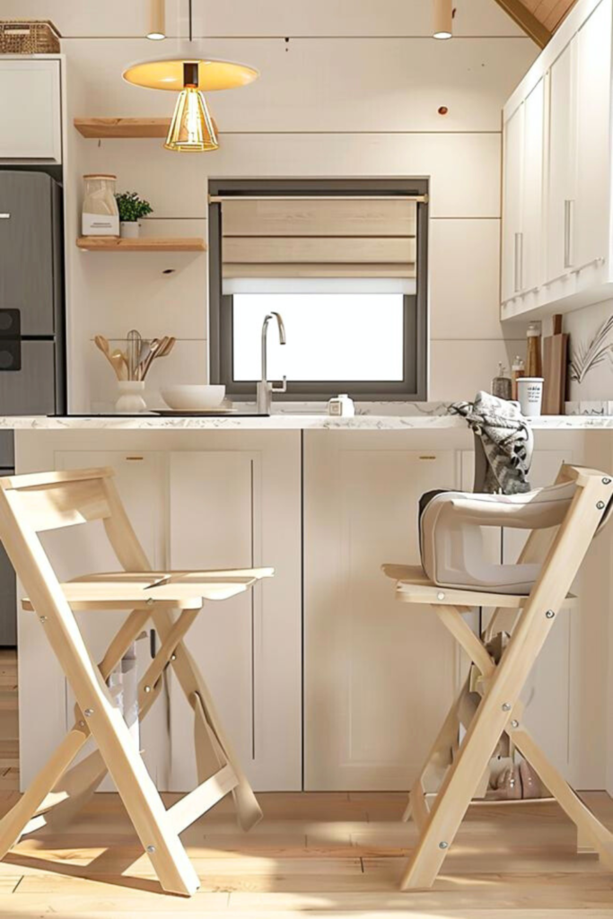 Opt for foldable bar stools and chairs that can be tucked away when not in use to save valuable floor space in your tiny kitchen. These versatile seating options are perfect for small dining areas or breakfast bars.
