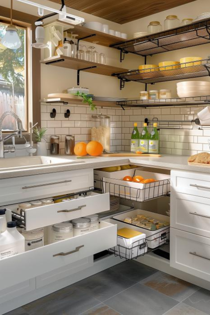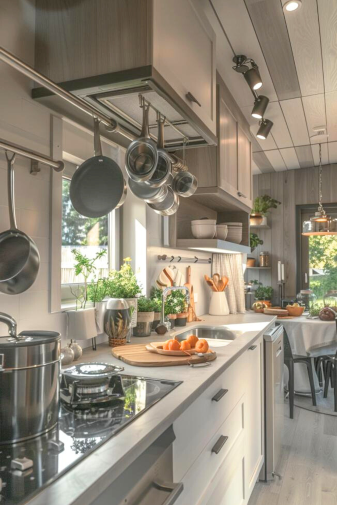 Utilize vertical space by installing shelves and racks. This allows you to store items such as pots, pans, and utensils within easy reach while keeping countertops clear.
