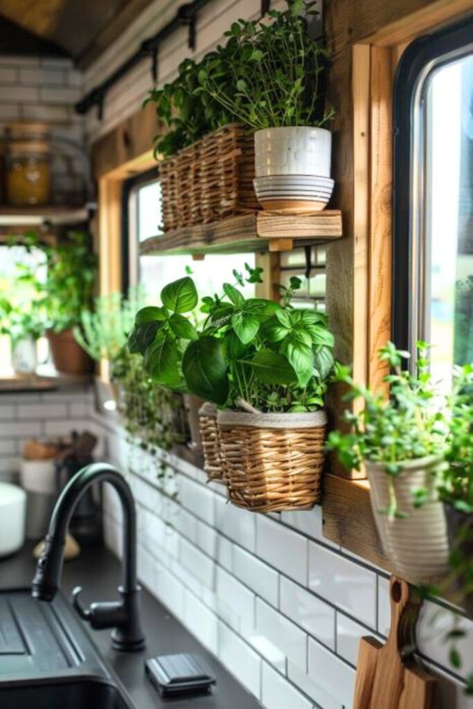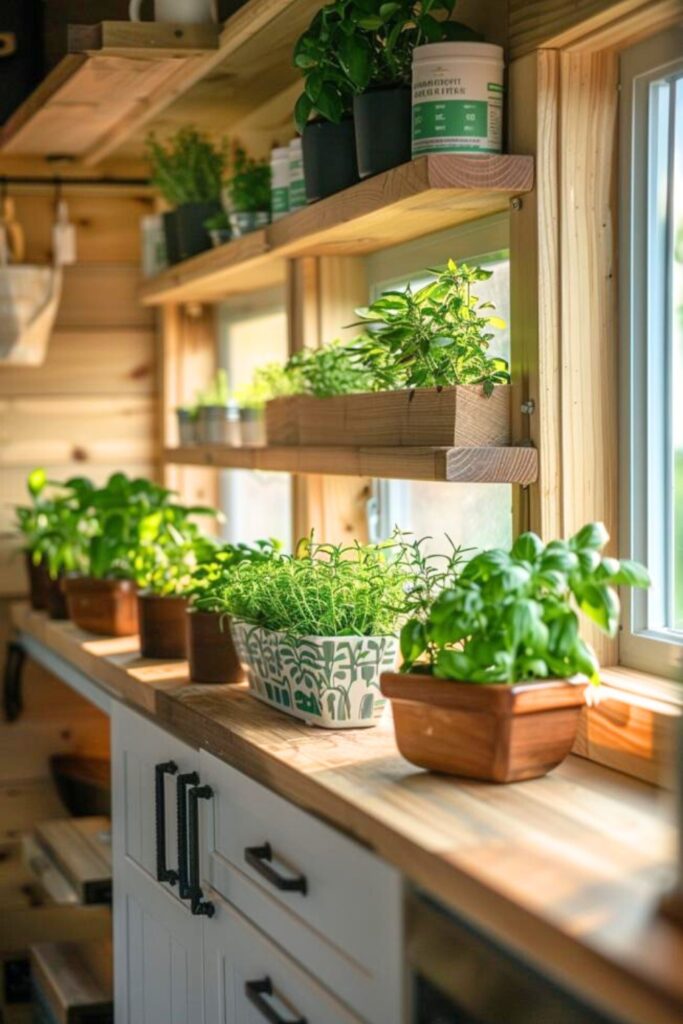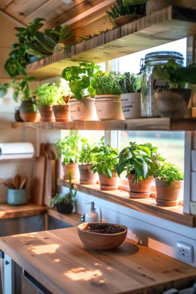 Bring a touch of greenery into your tiny kitchen by incorporating a miniature herb garden into your design. This not only adds visual interest but also provides fresh herbs for cooking right at your fingertips.