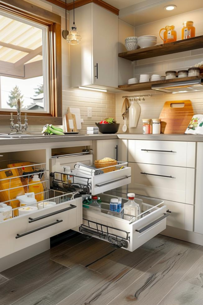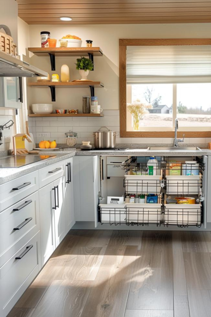 26. Under-Sink Pull-Out Storage Drawers for Cleaning Supplies