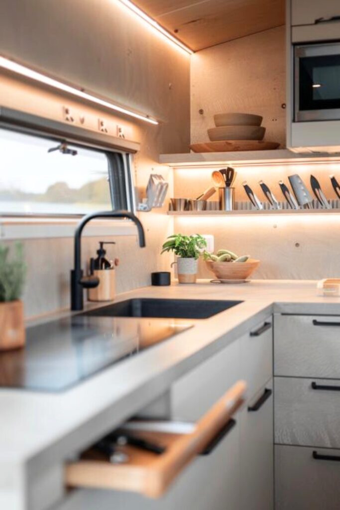 Tiny home living comes with its own set of challenges, especially when it comes to designing functional and stylish kitchens. However, with a little creativity and smart planning, even the tiniest of kitchens can be transformed into efficient and beautiful spaces. Here are 27 innovative tiny home kitchen ideas to help you make the most of your tiny home kitchen: